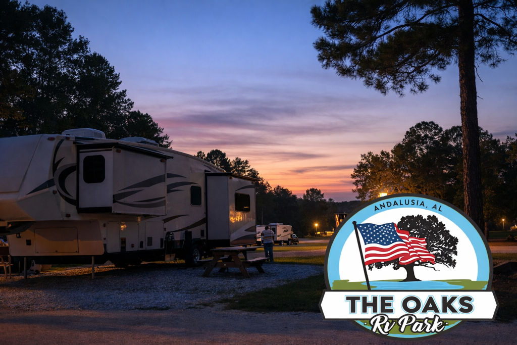 Long-term RV campers settled in at The Oaks Family RV Park in Andalusia Alabama